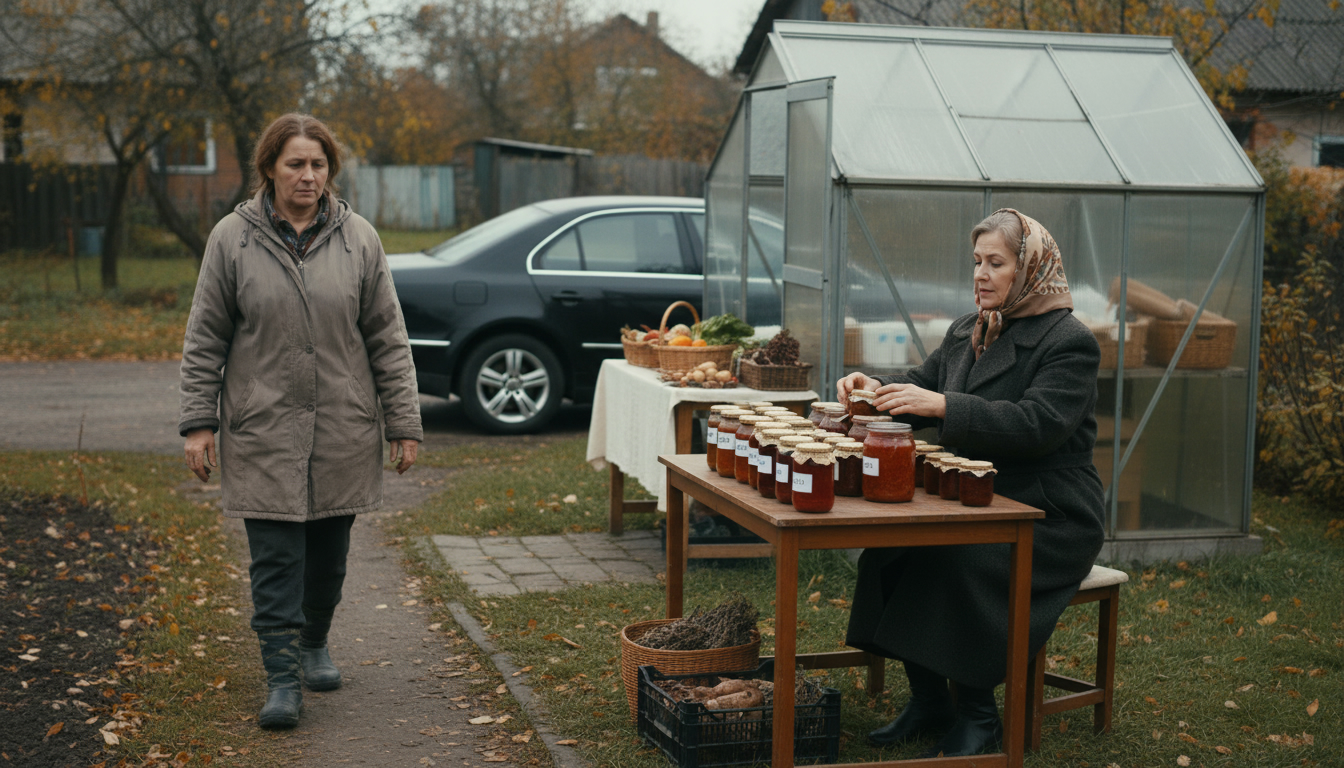 Az üvegháza mögött volt egy kis szín, ahol a befőttjeit tárolta. Nyolcvan-kilencven üveg minden évben — paradicsom, uborka, paprikakrém, szilvalekvár, baracklekvár, cukkinikrém. Minden üvegen a saját kezű írásával: Judit konyhájából, 2023. Mert így szokta. Mert szép volt, és mert valahogy azt érezte, hogy ha felírja a nevét, akkor az övé marad.
