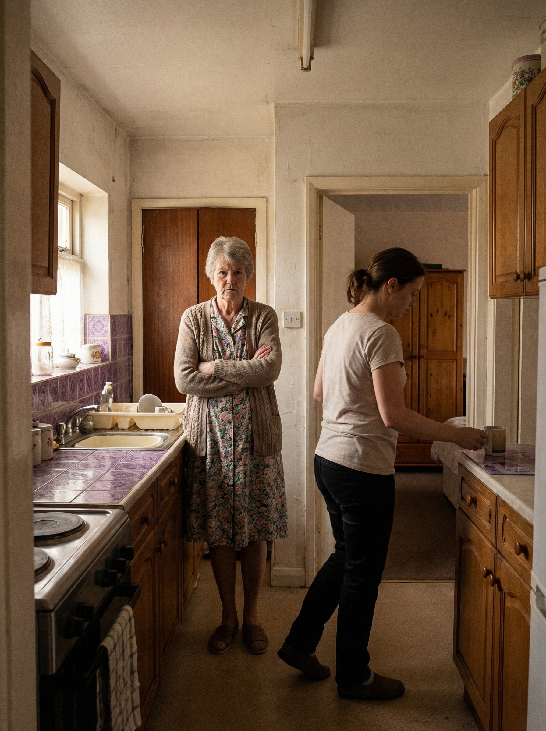 Erzsébet asszony — Géza anyja — ott állt a konyhaajtóban, ahogy mindig szokott, két karját a mellkasán keresztbe fonva, ajkait összepréselve, szemében azzal a jól ismert fénnyel, ami egyszerre volt győzelem és felkínált szenvedés. Hetvenegy éves volt, de a gerince egyenes maradt, ha fenyegetett. Csak akkor görnyedt meg, ha szánalmat akart.