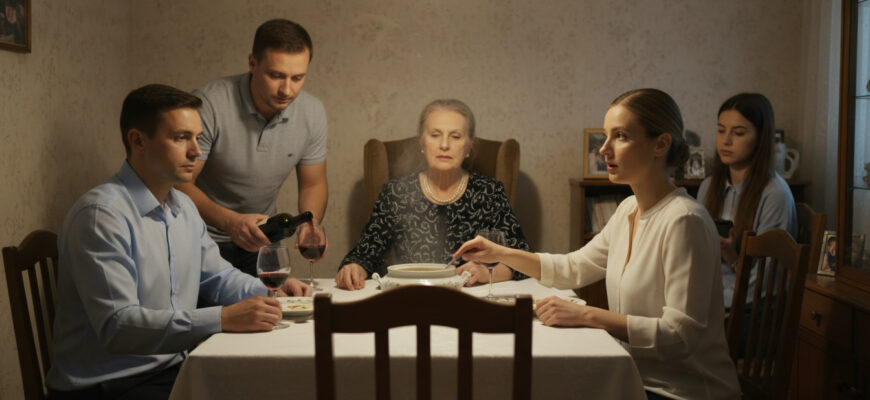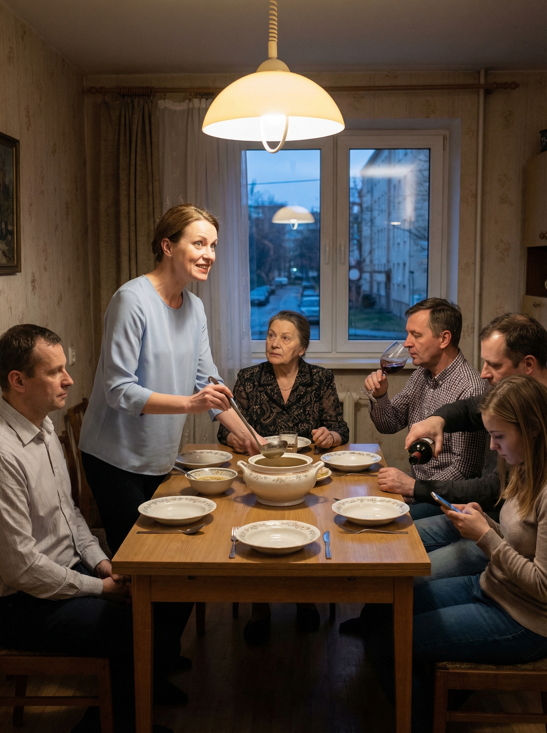 Anita keze megállt a levesestál felett. Körülötte az egész asztal — Benedek anyja, Péter a menyével, Tímea, két sógornő és egy sógor — mind ott volt. Mind hallotta. Mind a tányérjára nézett, kivéve Erzsébetet, aki ott ült a díszhelyen és várta, hogy Anita megköszönje az aggodalmat.