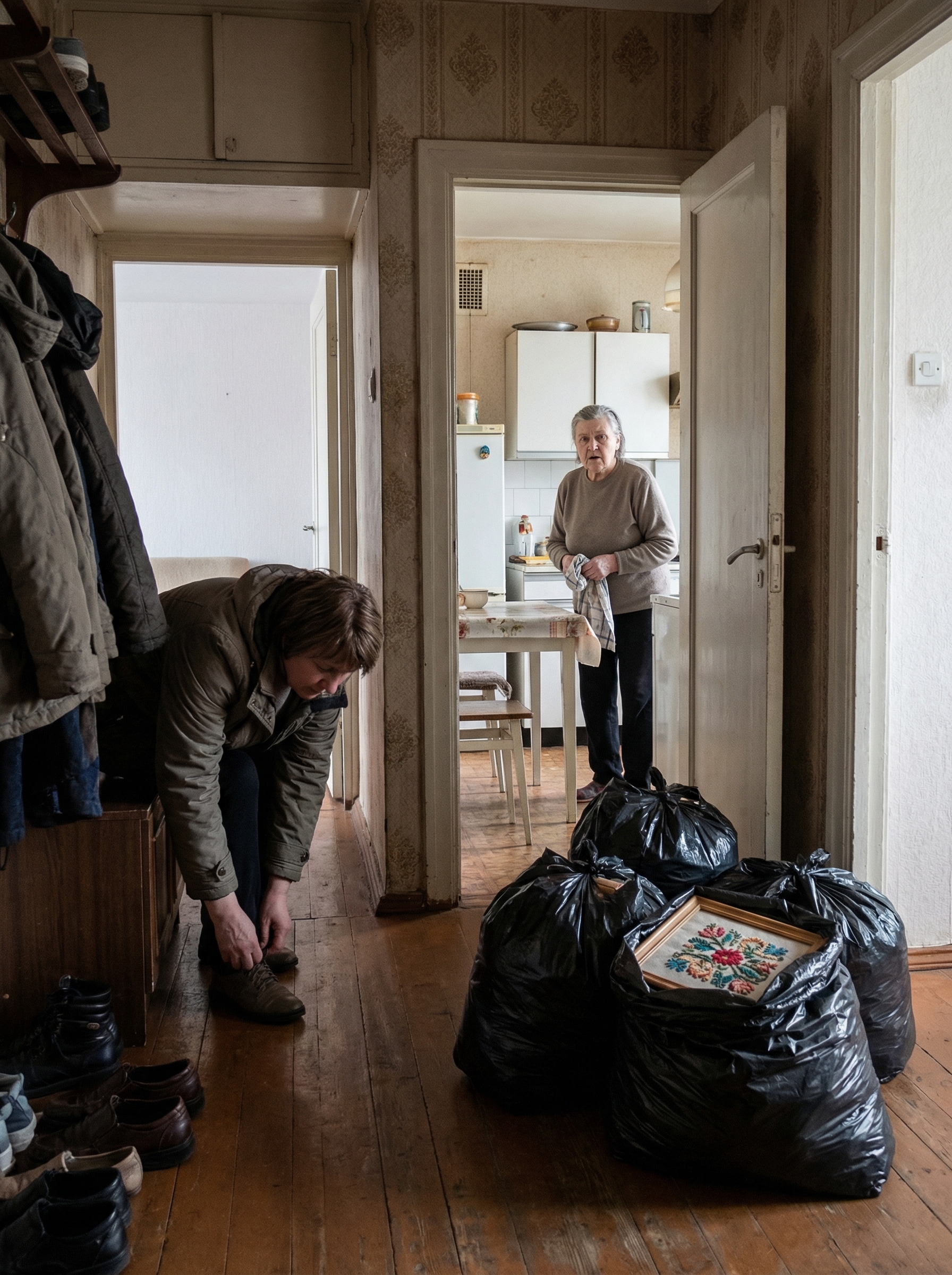 A fekete szemeteszsákok ott álltak a bejárati ajtó mellett, négy darab, szorosan megkötve. Mintha valaki éppen vinni készülne őket.