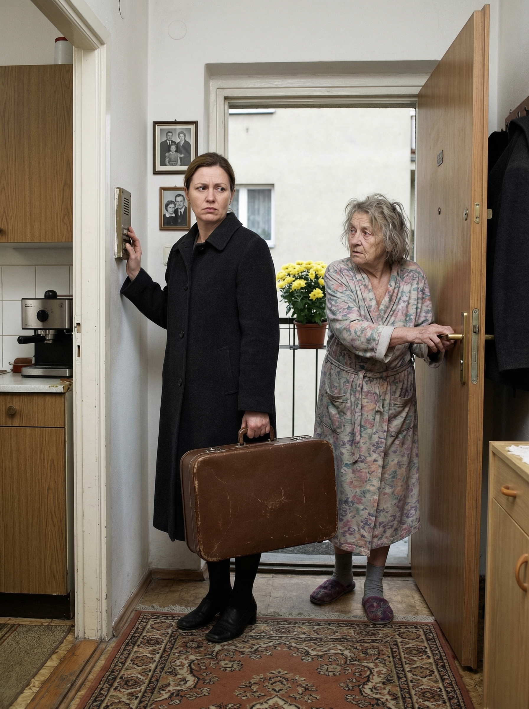 Csend. Aztán a zár kattanása, az ajtó nyílása, és Judit ott állt a küszöbön, hatvannyolc évesen, a virágmintás köntösében, a haját még nem fésülte meg aznap reggel. Megnézte a bőröndöt. Megnézte Erzsébet arcát. Nem kérdezett semmit.