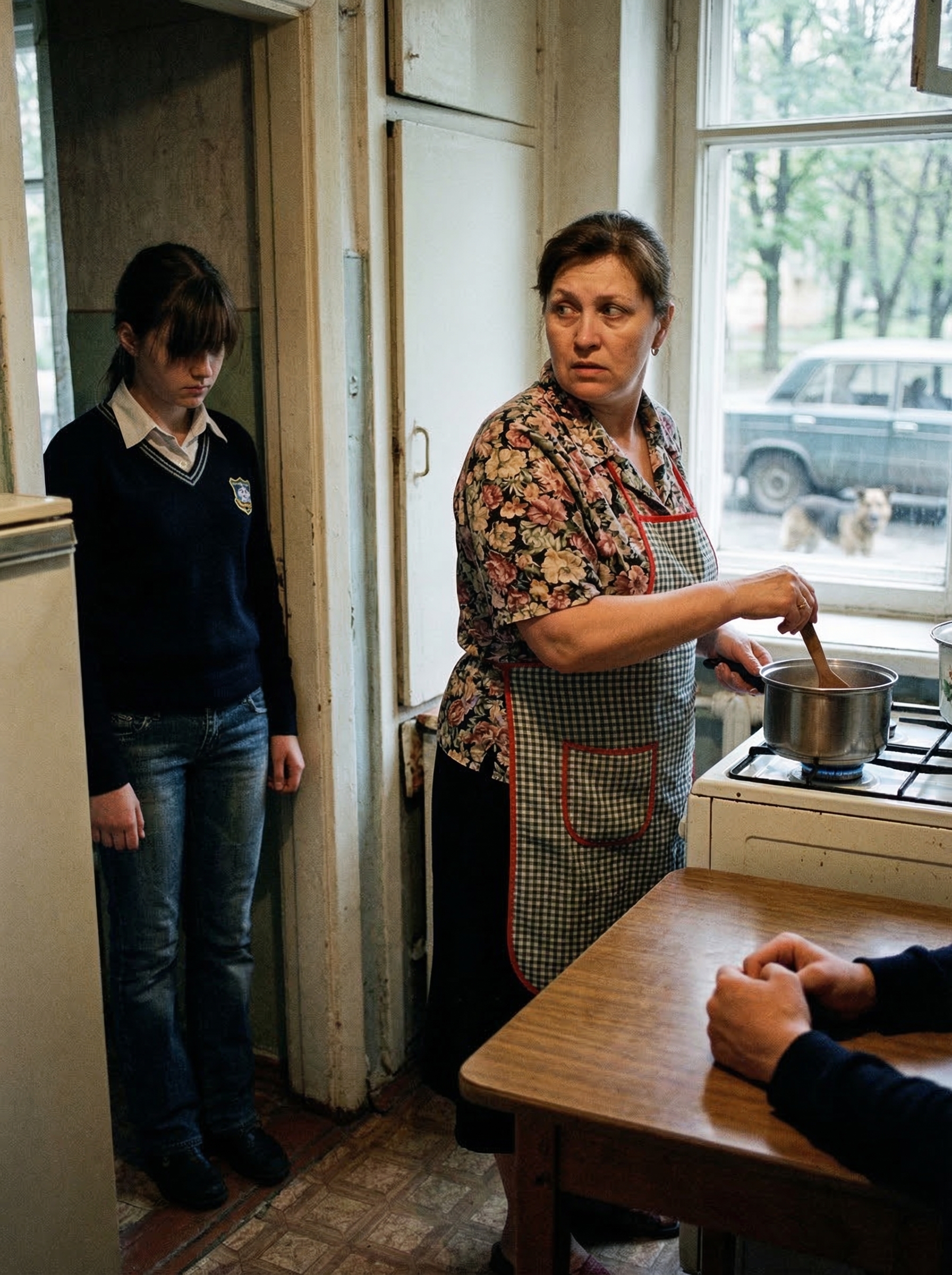 Csilla épp a tűzhelyen kavargatta a levest, amikor Hajnalka beállt a konyhaajtóba. Tizenöt éves volt a lánya, és Csilla már régen megtanulta, hogy ha ilyen hanggal kezdi — halkkal, de egyenesen —, akkor nem egy iskolai dolog. Akkor valami más.